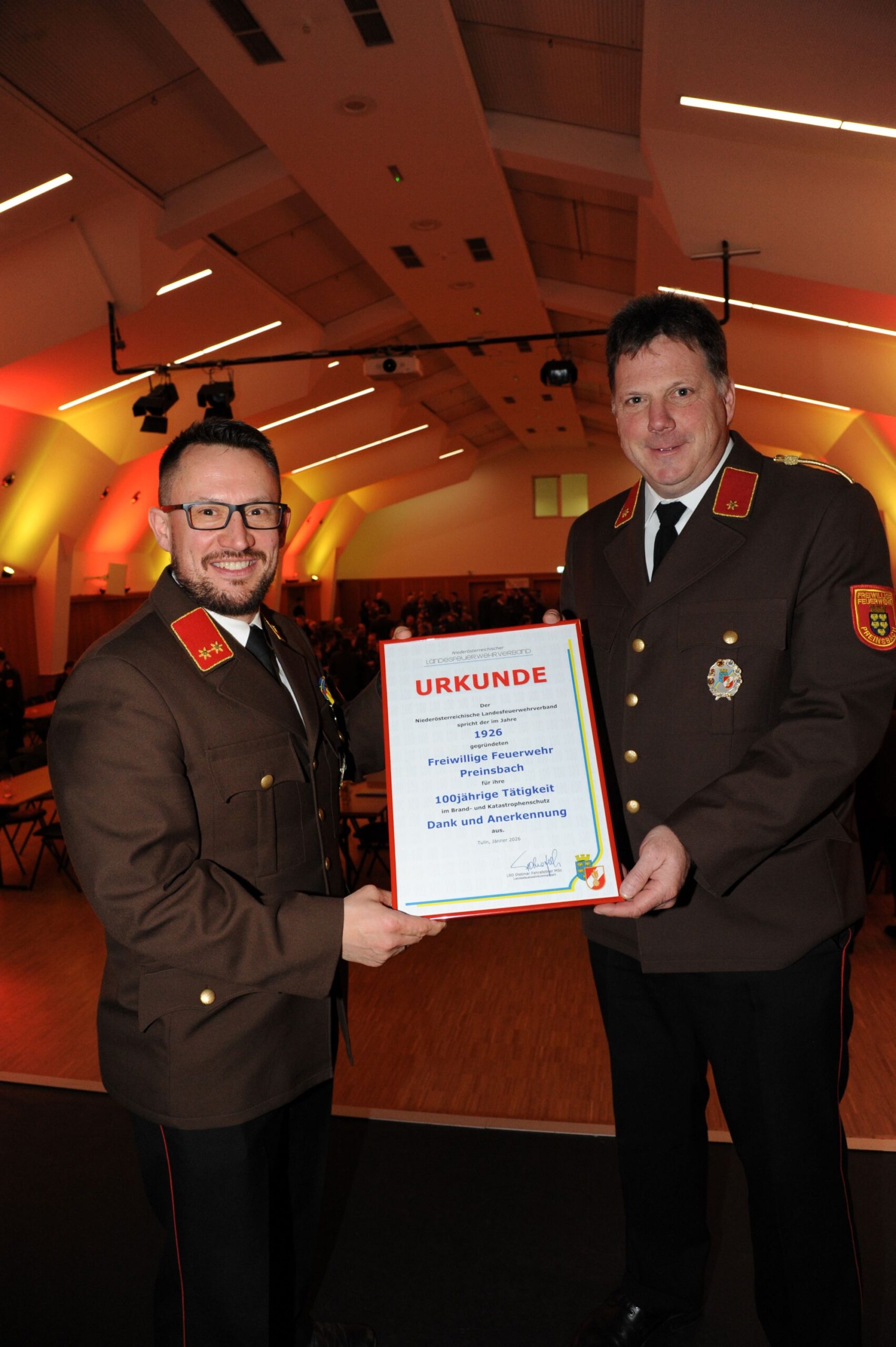 Beim 55. Bezirksfeuerwehrtag in Haag wurden auch 2 Amstettner Feuerwehren zu „Jubiläumsfeuerwehren erklärt“: Die FF Preinsbach feiert heuer ihr 100-Jahr-Jubiläum und die FF Ulmerfeld-Hausmening wird gar 140 Jahre. Für ihre Tätigkeiten sprach der Niederösterreichische Landesfeuerwehrverband DANK UND ANERKENNUNG aus. Auch Landesfeuerwehrkommandant-Stv. Martin Boyer, Bezirksfeuerwehrkommandant Rudolf Katzengruber und Abschnittsfeuerwehrkommandant Stefan Schaub würdigten die Arbeit der FF Preinsbach und der FF Ulmerfeld-Hausmening. Jubiläumsurkunden wurden an die FF Preinsbach und FF Ulmerfeld Hausmening (in Abwesenheit) übergeben!